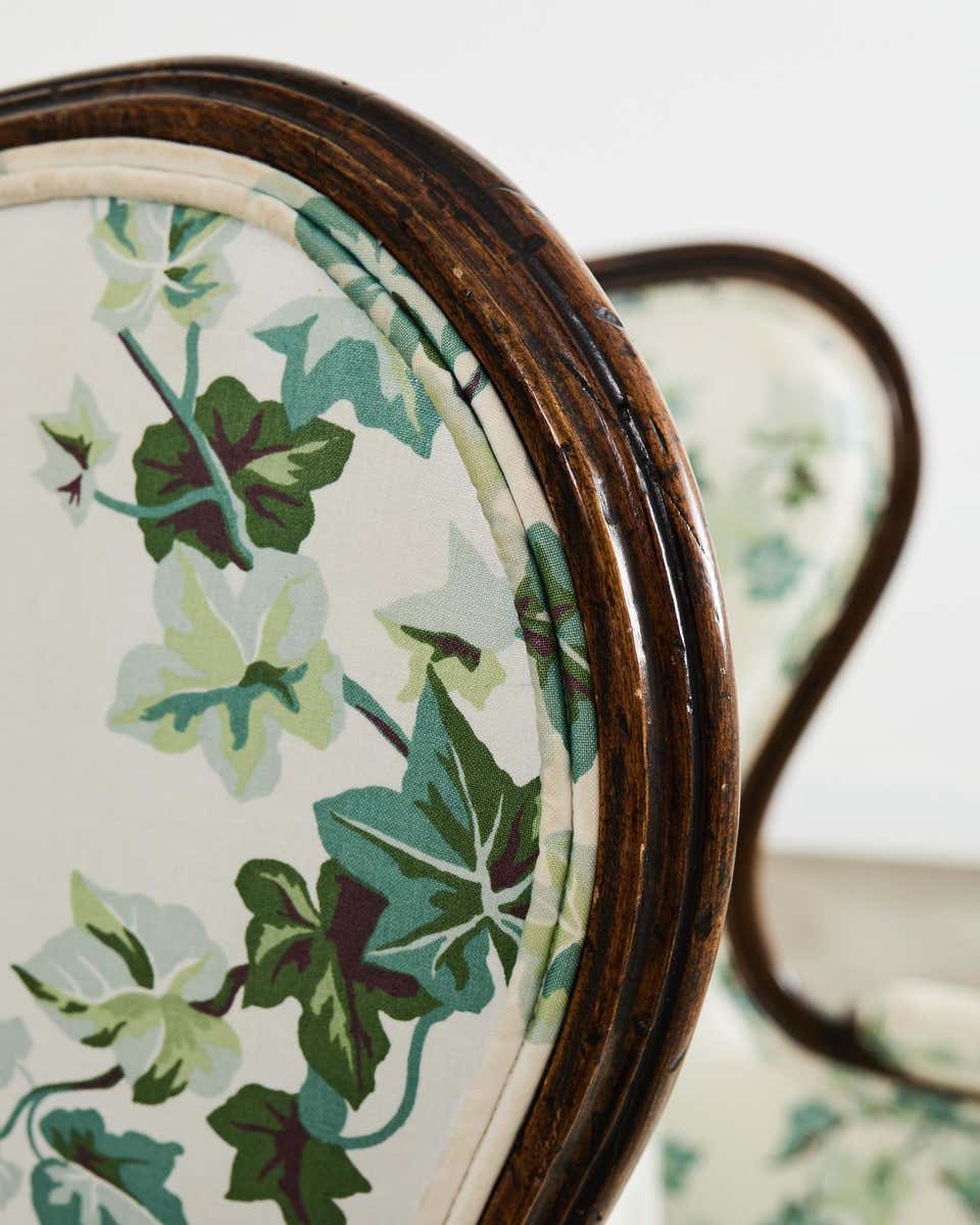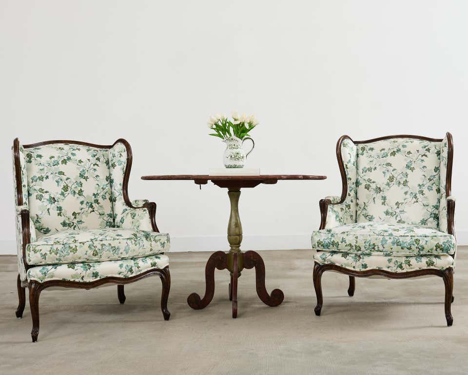 Each chair has a high backrest with traditional “wings,” finely curved wooden frames and permeated carved legs. The upholstery is decorated with the pressure of beautiful vintage florals, giving the chair a soft and romantic charm. The approval of the pulled upholstery seating and padded arms ensures maximum comfort, whether drinking tea, enjoying a good book or dealing with warm conversations.