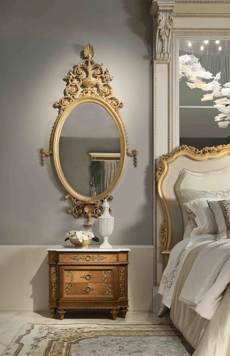 Experience the pinnacle of elegance with the Regale Bed, a handcrafted Italian masterpiece that brings timeless sophistication to your bedroom. Expertly built by skilled artisans, this bed features a gracefully sculpted frame, refined carvings, and a luxurious upholstered headboard that adds both comfort and grandeur. The rich finishes and meticulous attention to detail reflect Italy’s celebrated tradition of fine furniture making. Perfect for classic or contemporary interiors, the Regale Bed is more than just a place to rest—it’s a statement of taste and craftsmanship. Transform your bedroom into a sanctuary of beauty, refinement, and enduring quality.