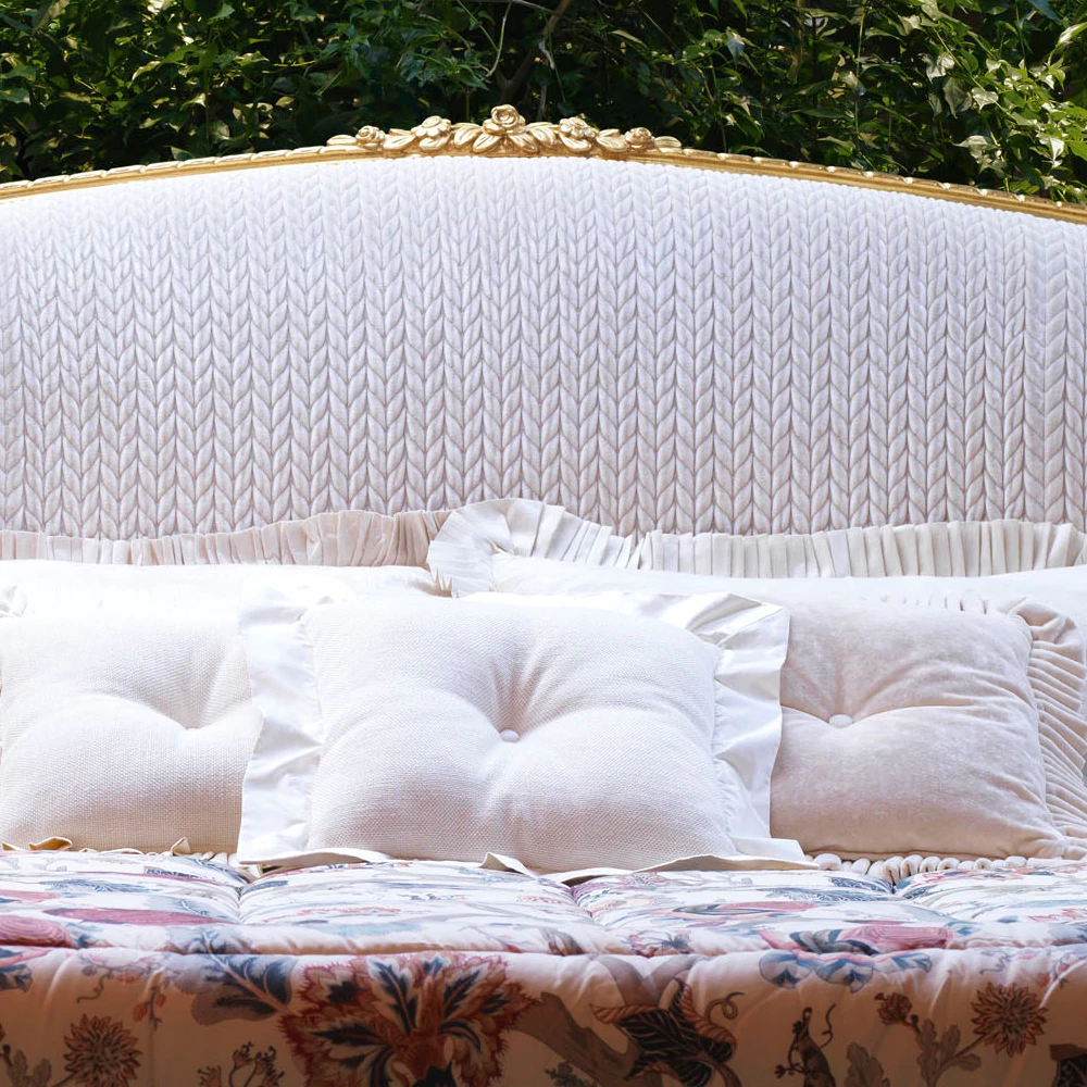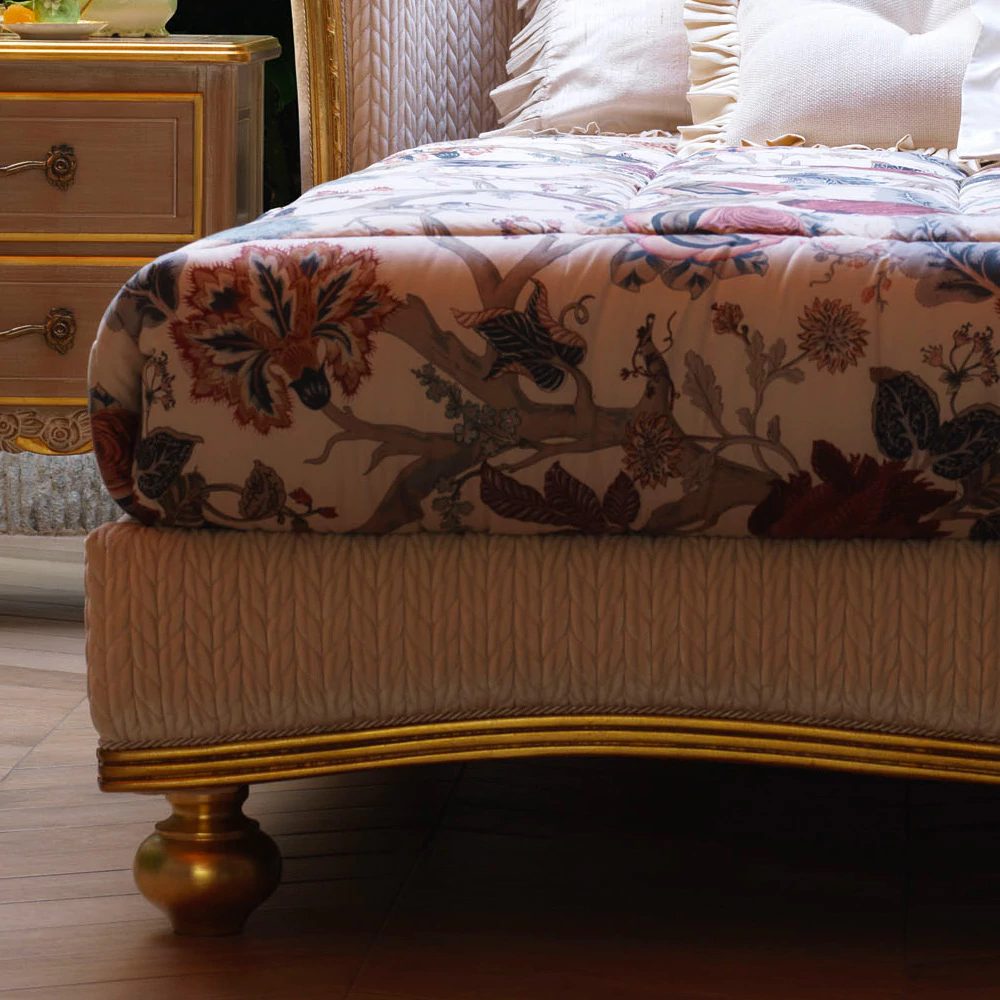 Classic Style Gold Winged Bed radiates opulence and timeless sophistication, making it a magnificent centerpiece for any bedroom. Its tall, winged headboard is adorned with exquisite gold detailing and elegant curves, exuding regal charm and grandeur. Upholstered in luxurious fabric, the plush surface offers both comfort and a lavish aesthetic. Crafted from premium materials, this bed promises durability and lasting support for restful sleep. Perfect for traditional or luxury interiors, the Classic Style Gold Winged Bed transforms your space into an elegant sanctuary, where classic design meets golden splendor, enveloping your bedroom in a warm, majestic glow.