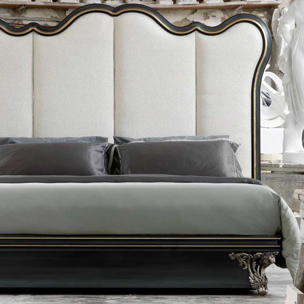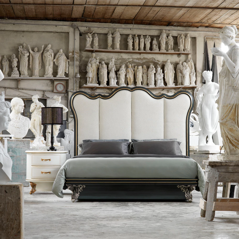 The Classic Venetian Style Bed with Tall Headboard exudes timeless elegance and grandeur, capturing the essence of Venetian artistry. Featuring a majestic tall headboard adorned with graceful curves and subtle carved detailing, this bed becomes a stunning focal point in any bedroom. Upholstered in luxurious fabric, it offers plush comfort and sophisticated texture. Crafted from premium materials, its robust frame ensures durability and lasting support. Perfect for classic and opulent interiors, the bed radiates refined charm and historic beauty. Transform your sleeping space into a serene retreat where traditional craftsmanship meets luxurious comfort with the Classic Venetian Style Bed with Tall Headboard.
